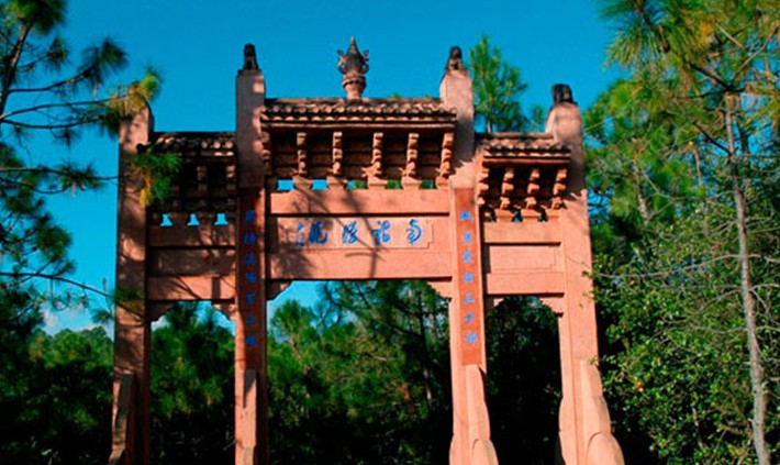 與獅子關石窟隔嵩相對的石鐘寺石窟,因窟前有石如鐘,石前建寺,因以名之。這里的第一,二窟,也是雕王者像。不過氣勢和陳設,均大不相同。第二窟共雕像16,中心人物是閣邏鳳。他頭戴雕鏤精細的王冠,身著圓領寬袖長袍,袖手盤坐,龍頭椅上的墊褥四周雕花,邊綴纓帶,倚背又鋪一層氈墊。版權所有山東聊城聊之旅國際旅行社有限公司,轉載必究!屏風雕日月圖像及飛龍騰空,椅上二獅相背蹲伏。王者右方略低處有一坐像,身披袈裟,手執念珠,身后撐有一曲柄傘,顯然是一位有地位的僧人。這可能是閣邏鳳的弟弟閣陂和尚,他在戰爭擊敗鮮于仲通后送率60人代表南詔至吐蕃獻捷,而吐蕃遣宰相倚祥葉樂持金冠、錦袍、安扛馓(曲柄傘)等大批名貴物資至鄧川,以南詔為兄弟之國。在王者與和尚兩側各雕侍從立像6人,有的抱劍、有的持扇、有的舉旗,皆體魄雄鍵,孔武有力。武士手中的一面旗幟,迎風翻飛,透露著吐蕃的影響。窟的前側,各雕一官吏,為清平官。廳內人物高低相間,錯落有致,尊卑分明,有強烈的立體感。整個場景、氣氛、旋律、情調,都彌漫著這個政權欣欣向榮的氣氛。200年前的納西族詩人桑映斗詩曰:"南詔閣邏鳳,留像此山谷。有唐中葉來,耀武武已黷。衣冠是耶非,儼然帝者服。"
