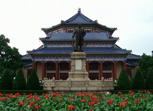 民國17年(1928年)11月,在校園南面八桂山上建立孫中山紀念碑。1930年在紀念碑頂上豎立孫中山銅像。