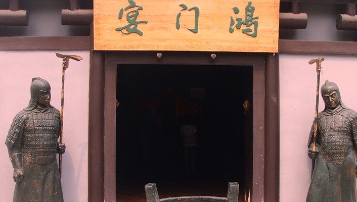 公元207年,項羽從謀士范增之計,在鴻門設宴,企圖借機殺掉劉邦,于是演出了一幕“鴻門宴”,著名的典故“項莊舞劍,意在沛公”就是指這段故事。現存遺址用青磚砌成,十米高的旗桿上飄揚著杏黃色的帥旗,臺子北面建了一座蒙古包似的軍帳,門口高掛“楚高軍旗”,帳內模擬當時的宴會場面,軍帳用玻璃鋼制成,里面塑有“項莊舞劍、樊噲闖帳”等塑像,生動的再現了當年戰事中的重要一幕。