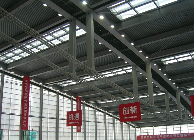 ◆展廳亮度正常照明、事故照明間隔分布,以配合自然采光天窗手動調(diào)節(jié);照度為:300lx-400lx(勒克司lx)