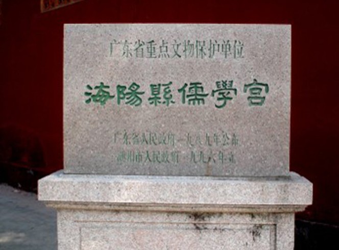 海陽縣儒學宮位于潮州城區昌黎路和文星路交界處。俗稱紅學、學宮。始建于南宋紹興年間,景炎三年(1278),后毀于火。明洪武二年(1369)重建大成殿,雖歷經滄桑,其主要建筑大成殿仍完整地保留了明初粵東地區殿堂建筑的風貌特點,以后歷代屢有增建,始成規模宏大的建筑群。