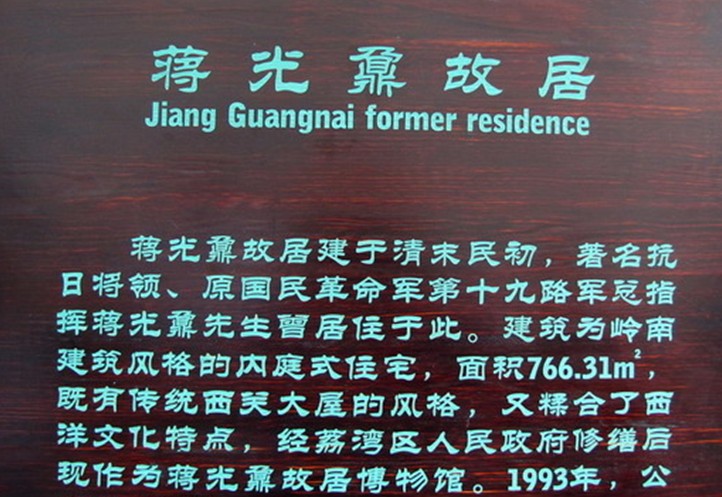 目前,蔣光鼐故居設(shè)施落后易致展品腐爛故居顯得格外的冷清。故居外墻上掛有的一張蔣光鼐先的畫像也有些陳舊,唯有故居里的荔枝樹依然濃綠。