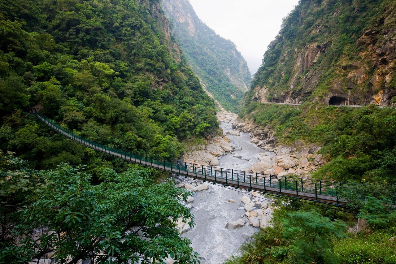 太魯閣峽谷為臺(tái)灣花蓮縣自太魯至天祥之間20千米的大峽谷。沿線山嶺,高入云霄,谷深莫測(cè),溪流蜿蜒,飛瀑似簾,景色奇絕。谷內(nèi)勝景有長(zhǎng)春祠、九曲洞、天祥等。附近還有建筑宏偉的德祥寺、七層天峰塔、孟母亭、普渡吊橋等。