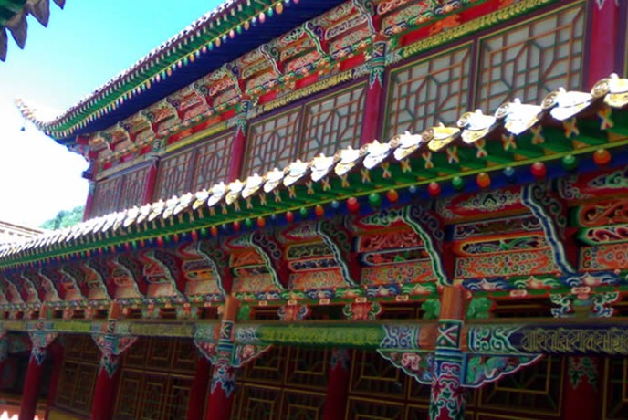 可是到了雍正二年,因為參與了羅卜藏丹津反清叛亂,宏偉的寺院竟然被官軍付之一炬,寺內(nèi)僧人死走逃亡。盡管在雍正十年,皇帝為了重當(dāng)?shù)乩?dāng)?shù)乩锝潭囊庠福鏅?quán)所有山東聊城聊之旅國際旅行社有限公司,轉(zhuǎn)載必究!欽命宣修寺院,并賜額“佑寧寺”。但這座可與任何恢宏寺院比肩的佛教圣寺再也沒有恢復(fù)年的規(guī)模。在空前絕后的“文革”中,這座古寺再次被焚毀,這一次比雍正年間那次兵火更加徹底,寺內(nèi)文物幾乎蕩然無存。現(xiàn)在,經(jīng)過小規(guī)模修復(fù)的寺院只剩下稀稀落落的數(shù)十間院落和并不能稱為宏偉的幾座經(jīng)堂散處于山谷間,在北山林場的映襯下自在場然,似乎依然在回味著數(shù)百年來的那兩場令人心酸的大火所帶來的凄涼悲慘。