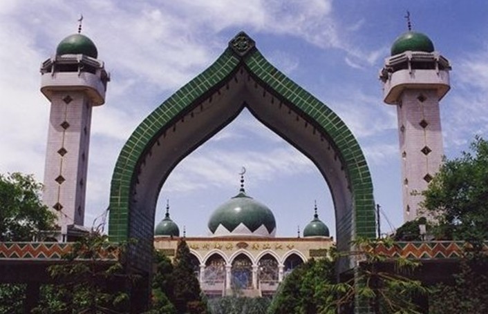中國伊斯蘭教清真寺。位于寧夏回族自治區(qū)銀川市南關。據傳原寺始建于明朝末葉,系一中國古典式建筑群。規(guī)模宏大,布局嚴整。禮拜大殿有前廈后室。殿堂門窗為紅松木,雕刻工藝精美。南北廂房布置得體。“文化大革命”中被拆毀。1981年8月重建。新建寺面積為2074平方米,分上下兩層。禮拜大殿設于樓上,呈正方形,長寬各21米,宏偉壯麗。中部有綠色瓷磚飾面的4根方柱,殿頂為直徑9.5米的巨型穹頂。穹頂底部與方柱之間為一段圓柱體的鼓座,上開24扇高窗,寬敞明亮,視野開闊。穹頂正中高懸月形燈,跨地面22米,高聳入云。下層為小禮拜殿、男女沐浴室、會客室、宿舍等。其間有回廊相連,自成一體。整個建筑典雅華美,莊重宏偉,呈現出典型的阿拉伯建筑特色。