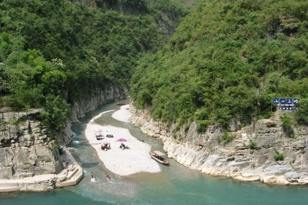 長(zhǎng)灘峽:自雙河至平河,全長(zhǎng)5公里。峽中有一段長(zhǎng)約2公里的河灘,寬十余米,筆直一線,水平如鏡,沙石潔白,兩岸山水掩映,故名長(zhǎng)灘峽。峽內(nèi)谷窄山高,絕壁對(duì)峙,氣勢(shì)雄險(xiǎn);水清見(jiàn)底,水中游弋品種繁多的魚類;沿岸多有色彩斑斕的卵石,時(shí)或見(jiàn)古生物化石。峽內(nèi)有滴水巖、聰明泉、手爬巖、穿洞子等景致。