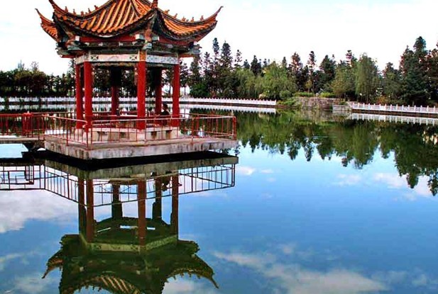 倒影公園池水碧綠如玉,清澈見底,浪不驚,平如鏡。隨著觀賞的角度不同,倒影形態也隨之各異。每當冬季,整座蒼山銀裝素裹,三塔倒影更加迷人。