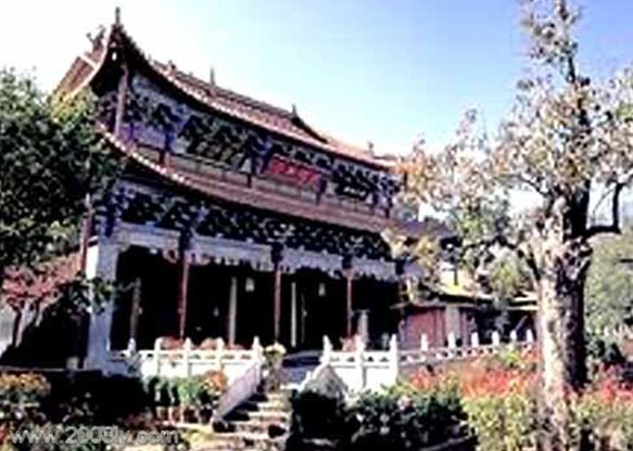 正殿的柱子,都是一人圍抱,正中央的一對柱子上,各有一條栩栩如生的蛟龍,沿柱環繞,龍尾幾乎接近地面,舞牙張口的龍頭,象要騰云駕霧,將及柱頂大梁。殿中供奉著白族信奉的“最高本主”,年年每到四月,正當春暖花開的時候,附近州縣的群眾,長途跋涉前來祭祀。雪泉水,環寺突涌,游人到此,都以能暢飲 .