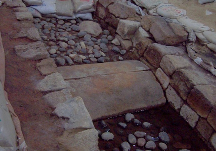 發(fā)掘工作從8月1日開始,至11月結(jié)束,發(fā)掘面積450平方米,在距地表深約4.5米處清理出一座大型石構水池的西南一角。水池呈仰斗狀,池壁用灰白色的砂巖石板呈密縫冰裂紋鋪砌。池底平正,用碎石鋪砌。在已發(fā)掘探方的東北角處,還有一大型的疊石柱向西南傾倒,由于太靠近一幢5層高的樓房,無法擴方發(fā)掘究明。水池當中還散落有大量的八棱石柱、石欄桿、石門楣、“萬歲”瓦當和板瓦、筒瓦等建筑材料和構件,可知水池當中原來是有一組建筑的。后經(jīng)鉆探得知,版權所有山東聊城聊之旅國際旅行社有限公司,轉(zhuǎn)載必究!水池的面積約4000平方米,目前揭露的僅是其西南約400平方米的一角。