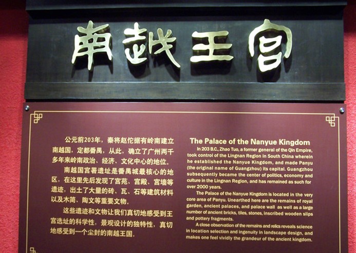 1995年、1997年在廣州北京路與中山四路交會處,發(fā)現(xiàn)了兩千年前趙佗建立的南越王宮署遺址。南越國宮署御苑中的大型石構水池和曲流石渠設計之獨特,構筑之精巧,規(guī)模之宏大,令人贊嘆不已。這處遺址先后兩次被評為全國十大考古發(fā)現(xiàn)。據(jù)悉這是中國迄今發(fā)現(xiàn)最早的御苑遺址,對研究古代建筑、古代園林和南北民族融合的歷史有重要的價值,是中國文化瑰寶,為廣州歷史名城精華所在。