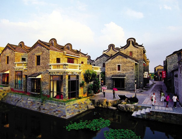 嶺南印象園位于廣州大學(xué)城所在的小谷圍島,總占地面積達(dá)16.5 公頃。這里四面環(huán)水,西臨洛溪島、北臨生物島、東臨長洲島、與會展中心所在的琶洲島隔江相望,交通便利。嶺南印象園依托天然的地域優(yōu)勢和原練溪村深厚的嶺南民風(fēng)民俗文化,建立了一個融文化觀光、趣味游樂、特色餐飲、休閑購物、精彩演藝于一體的大型休閑文化旅游景區(qū)。