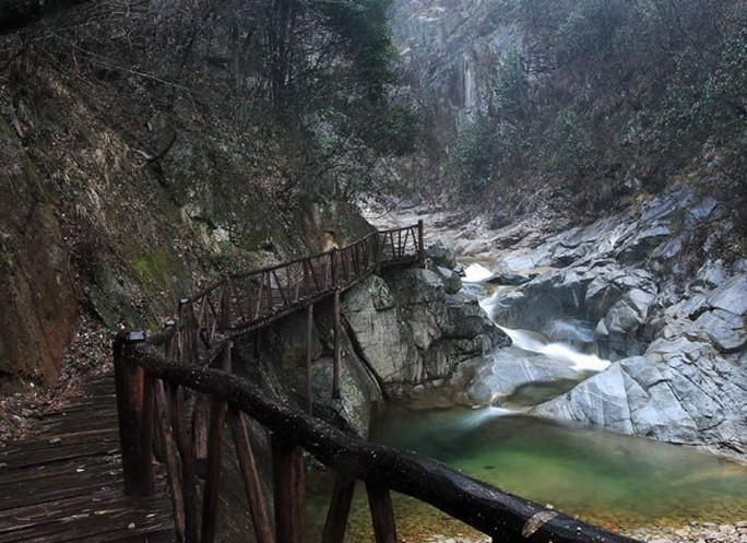 ◇一線天:亦名“一線曙光”,人在澗底,仰首張望,昭昭一線,長可半里,故曰“一線天”。
