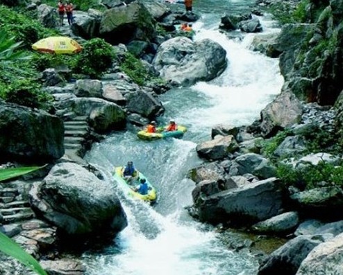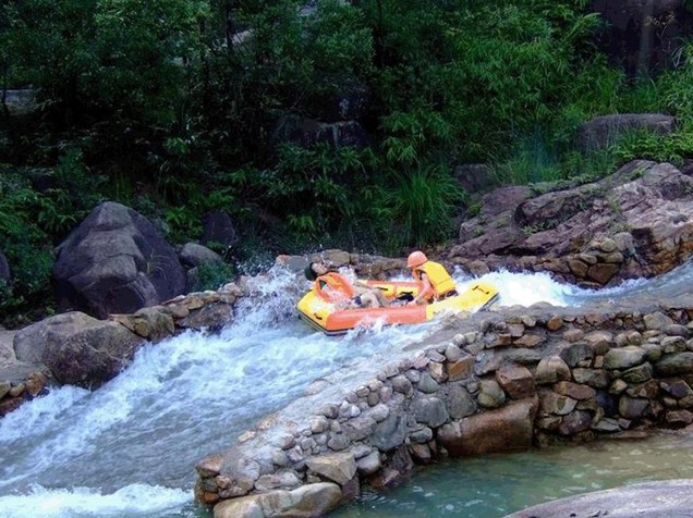 九龍灣漂流的源頭,版權(quán)所有山東聊城聊之旅國(guó)際旅行社有限公司,轉(zhuǎn)載必究!在楓樹(shù)壩水庫(kù)下河面。壩高95米,蓄水2億立方米,是南粵第二大水庫(kù),氣勢(shì)雄偉。江水不急不緩,安全保障措施完備,適合各個(gè)年齡段的男女參加,是集漂流、賞景、懷古、健身、休閑、度假于一體的安全可靠、輕松寫(xiě)意的生態(tài)旅游。漂流的起點(diǎn)是楓樹(shù)壩水電廠壩下江面,終點(diǎn)是素有天下第一神泉之美稱(chēng)的龍川礦泉。中途可上岸在一河中草坪休息。此外,九龍灣還開(kāi)辟了夜游九龍灣和夜宿青龍灘的野營(yíng)和沙灘晚會(huì)活動(dòng)。