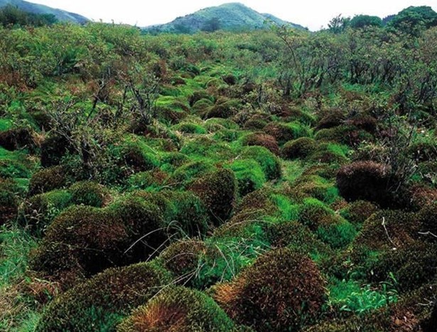 滕古田自然保護區還有許多別處難以見到的奇觀,如古樹的大板根現象,一棵三人才能合抱的古樹生出五支刀一樣的板根露出地面,幾個人坐在板根之間誰也看不著誰,這就是亞熱帶森林特有的景觀。在這里,還能夠欣賞到亞熱帶地區罕見的成片紅皮糙果茶純林,樹干挺拔崔嵬,葉片寬大蔥郁,顯示出一種拙樸、雄壯的原始之美。在行至古田的山路上,還有一種長在大石旁邊名叫“過崗龍”的藤,藤的頭部直徑有70多厘米,三支分藤匍匐攀沿于兩座山頭,總長達400多米。古田保護區還有水流飛簾倒卷的水簾下瀑布、頭沉出水處的沉水河等頗有欣賞價值的自然景觀。