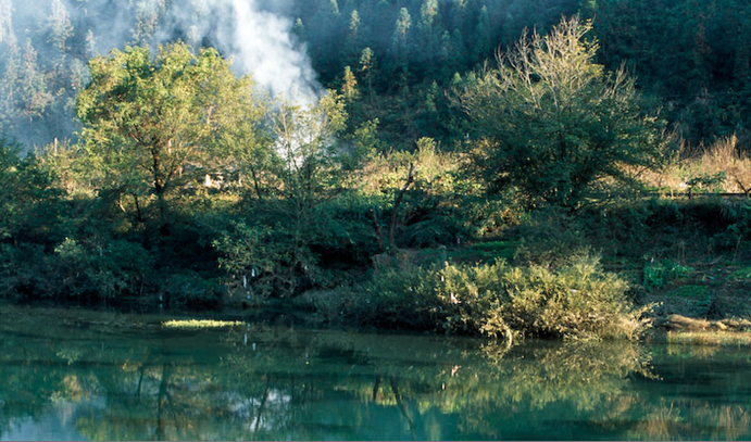 大山村有王村、李村和洪村三個村民組,其中王村所在的地方尤為奇特,他們倚山結廬,世代以種茶為生。村口一棵甜櫧,680年,蔥蘢如蓋。村子四面環(huán)山,像安臥在搖床里的嬰兒。東南面有一叢古樹,天然一處入風口,光線也通透,遠處層巒疊嶂,云霧常年繚繞,而西北面則有一個天然的出風口,我們先前感受到的暖流氣息,很可能就是從這個出口散出去的。