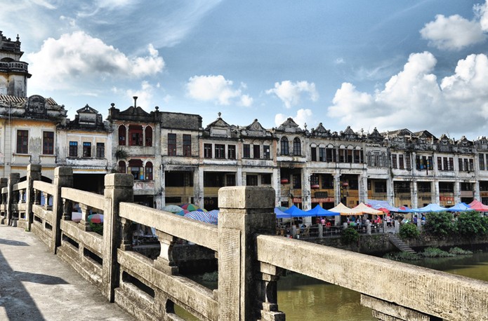 赤坎古鎮最早的建筑已有350多年的歷史。早年移民歐洲和美洲等地的赤坎華僑,從國外帶回建筑圖紙,融合開平本地的建筑藝術,在這里建成了大批商鋪式的樓房。這些樓房雖然經過百多年的風風雨雨,但依然風韻不減。該鎮的堤西路,更是因為綿延300多米的騎樓街、保存完好的600多座古老的騎樓而深得影視界人士青睞,認為這里具有上個世紀二三十年代舊廣州、舊香港的韻味,版權所有山東聊城聊之旅國際旅行社有限公司,轉載必究!被稱之為“電影街”。