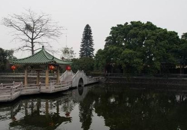 明代建筑,原為天后廟,由于潮連四面環(huán)海,為保海上出入平安,鄉(xiāng)人立神廟供奉天后娘娘,后改名為洪圣殿。1984年擴(kuò)建為公園,現(xiàn)有洪圣殿、慈母亭、四眼井等古跡。逢天后誕,前來供奉之游人不絕。
