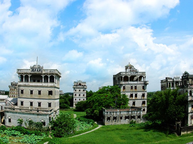 自力村碉樓群位于開平市塘口鎮,是世界文化遺產地之一。[1]該村自然環境優美,水塘、荷塘、稻田、草地散落其間,與眾多的碉樓、居廬相映成趣,美不勝收,形成一幅陽春煙景田園詩意般的農耕水墨畫,獨具嶺南鄉村氣息的洋式城堡村落。