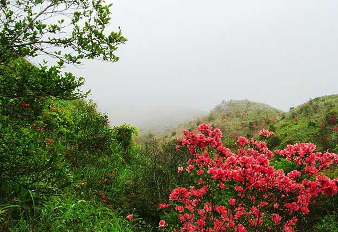 生態區分布著近千畝的連片野杜鵑,版權所有山東聊城聊之旅國際旅行社有限公司,轉載必究!四五月花開時節,杜鵑吐艷,遠遠望去,映紅幾座山坡,十分壯麗。