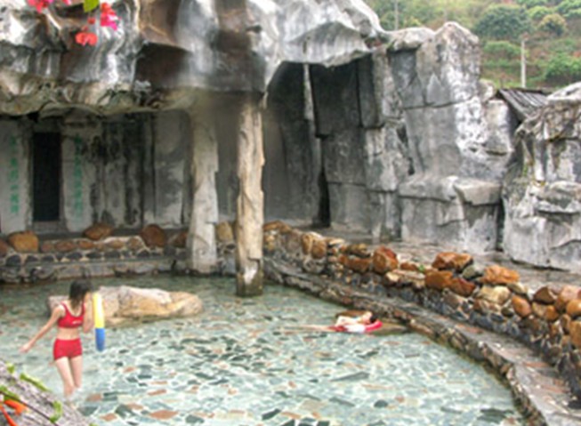 度假村四周群山起伏,層巒疊翠,風光秀麗,景色迷人,充滿大自然的野趣。度假村占地面積100多畝,地下熱源達5平方公里。露天泉涌100多處,月流量近10萬立方米,其中一個泉眼,每小時流量60立方米。該度假村的溫泉水溫最高達80度以上,可將雞蛋燙熟,所以在諸多泉池里有個湯雞蛋小池,讓你可以邊泡溫泉邊剝燙熟的雞蛋來吃。溫泉水用作健身理療治病,在我國有近千年的歷史。