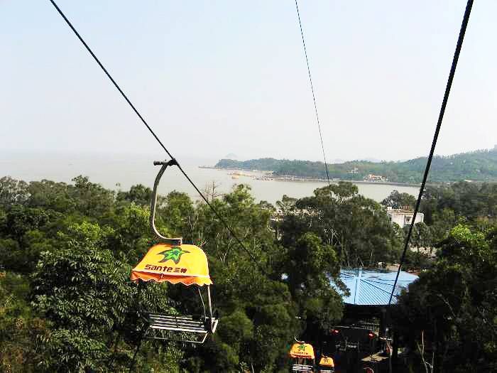 船底山東南坡,是石景山索道區,有珠海獨一無二的山地沖鋒車,世界第一條管軌式滑道,全長650米,平均傾斜度10.2度,平均離地高度0.8米。全套設備引進德國最新產品,其中有5個大彎道和3個小彎道組成,速度全由自己控制,擁有三重保險設施,速度由自己控制,可快可慢,安全舒適。乘觀光纜車觀景,遠眺山海綠島,近瞰浪漫之城,新鮮快樂,逍遙自得。