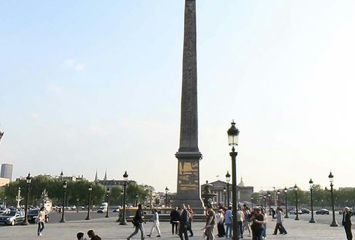 協和廣場位于巴黎市中心,塞納河北岸,是法國最著名的廣場,18世紀由國王路易十五下令營建。建造之初是為了向世人展示他至高無上的皇權,取名“路易十五廣場”。大革命時期,它被稱為“革命廣場”,被法國人民當作展示王權毀滅的舞臺。1795年改稱“協和廣場”,1840年重新整修,形成了現在的規模。廣場呈八角形,中央矗立著埃及方尖碑,是由埃及總督贈送給查理五世的。方尖碑是由整塊的粉紅色花崗巖雕出來的,上面刻滿了埃及象形文字,贊頌埃及法老的豐功偉績。廣場的四周有8座雕像,象征著法國的8大城市。