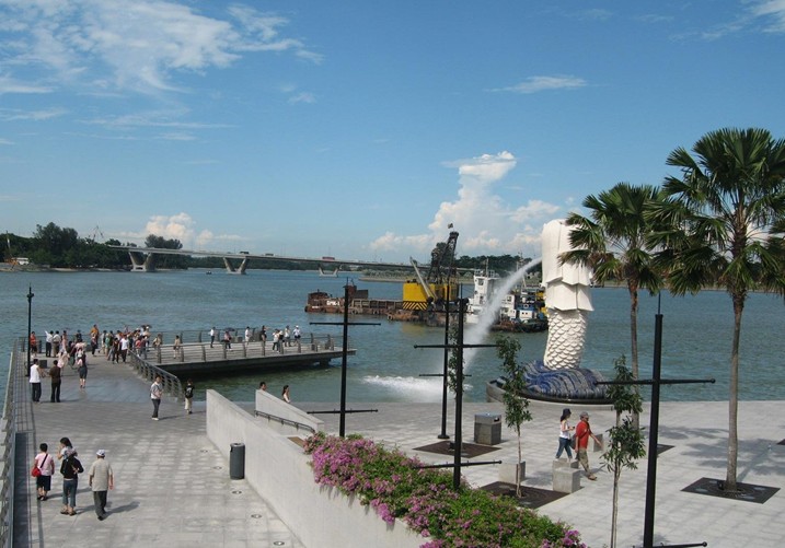 2002年9月15日,30年前建成的魚尾獅,被移到附近浮爾頓一號大廈前面新建的魚尾獅公園,而躋身世界發達國家行列的新加坡,十分珍惜已取得的成就,同時更加著力于未來的發展。李光耀在主持新魚尾獅公園開幕儀式上說:魚尾獅的搬遷,“象征了現代新加坡不斷跟隨時代變遷和持之以恒的精神。”白天,魚尾獅在極具現代特色的雄偉建筑物烘托下,展現迷人的噴水英姿;到了夜間,公園又能搖身一變,成為鬧市中人們尋找悠閑浪漫的寧靜公園。與以往一樣,新的魚尾獅公園是不收費的,國人與游客可以來這里自由自在欣賞魚尾獅的風采和附近的怡人景色。觀眾能夠坐在階梯上,欣賞各項精彩表演。魚尾獅的新居以水為主題,配上燈光效果,營造出魚尾獅浮立在碧波之上的生動壯觀的視覺效果。四周空地可供各種戶外表演所用。不遠處還有浮動舞臺,可以隨著潮汐變化而升降。連接魚尾獅和看臺的階梯不僅可讓游人靠近水邊,也可讓游人以階梯席地而坐。看臺可承受300人,游人站在看臺上,從正或側面與魚尾獅合照,就能以浮爾頓酒店、新加坡金沙娛樂城、濱海公園等市區金融中心建筑物輪廓線為背景。此外,看臺也能變成可容納200名表演者的舞臺,觀眾坐在階梯上,就能背靠濱海灣,版權所有山東聊城聊之旅國際旅行社有限公司,轉載必究!在星空下欣賞音樂會和精彩的表演。
