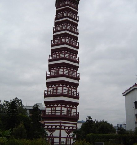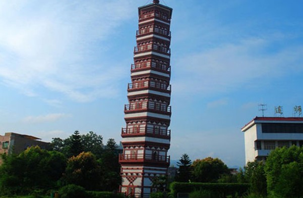 該塔為樓閣式磚木塔,外墻為土紅色,塔高45.5米,建筑是斗拱結構,平面六角九層、塔內空心,有梯道可登,可旋登至塔頂,鳥瞰連江景色和連州全貌。塔的每層用磚砌出角柱、椽枋、斗拱、平座和檐面,其中第一層斗拱中用人字形拱托鴛鴦交手拱。塔頂有一個用生鐵鑄造的古塔頂蓋。當年建塔時,因塔頂蓋太重,無法提升上去,只好擱置在塔的旁邊。因此,古有“惠州古塔無影,連州古塔無頂”之說。站在塔旁,明顯感覺到這座塔的中軸線不是垂直的,而是向西傾斜1米多。原來此塔的塔基是建在一座小石山的山尖上,歷經千年的風吹雨打和地殼運動,塔基發生了微小的變化,東高西低,造成塔向西傾斜。1985年國家文物局拔出??睿瑢酃馑M行維修,版權所有山東聊城聊之旅國際旅行社有限公司,轉載必究!加固了塔基,傾斜不再繼續發展。