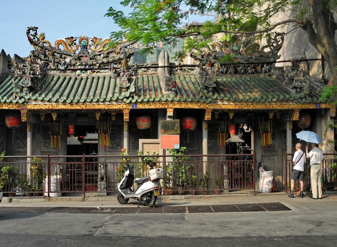 大家在參觀的時候,請注意欣賞廟內(nèi)的各種潮汕工藝。比如門壁的石質(zhì)浮雕、梁柱的木雕彩繪,都具有很高的審美價值,特別是一對由整塊石頭雕刻的透雕盤龍柱石,上有八仙立像,工藝十分高超,過去只有在皇宮和孔廟才能見到。屋頂?shù)那洞伤囆g(shù),是潮汕工藝特有的技術(shù)。用燒制好的彩色陶瓷片,版權(quán)所有山東聊城聊之旅國際旅行社有限公司,轉(zhuǎn)載必究!拼制出各種戲文圖案,人物栩栩如生,又不怕風雨的侵蝕,現(xiàn)在已經(jīng)廣泛運用到民間建筑中了。