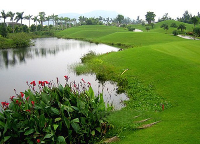 球場配備國際先進水平的配套設施,最先進的電腦系統以及排水設備,時刻保持最佳打球環境。球場延緩蘇格蘭古樸風范,展開夢幻般絢麗場景:充水鄉韻味的球場內,一條全長1.5公里的海岸線;星羅棋布的人工湖,與小河交織成網, 將球場雕塑成一塊塊開頭各異的"綠洲"。揮桿者乘船打球,乘船往來,成為高球場一大特色。飄逸起伏的球道或直向上,跌宕而下;或逼仄曲折,撲朔迷離;或寬闊遙長,草天相接。