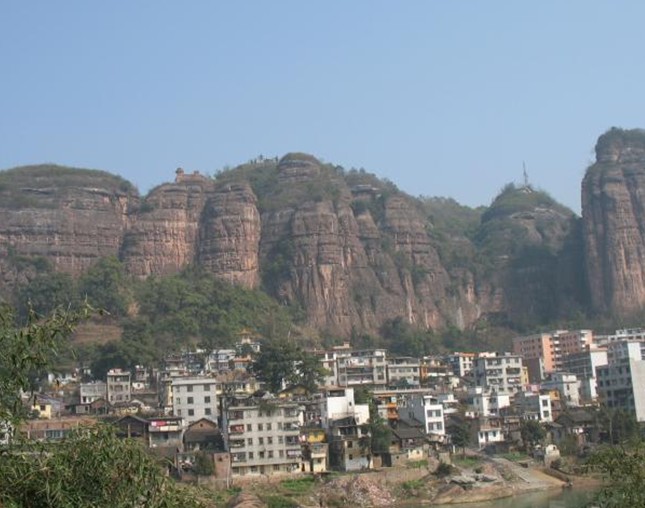 危崖峭壁,與仁化丹霞山同為紅砂巖構(gòu)成。嶺上有三塊大石,堆砌得體,高 嶺上有三塊大石,堆砌得體,高約6米,長(zhǎng)20米,高踞嶺巔,狀似欲啼雄雞,故名。此外,還有許多摩巖石刻和其他景觀,天賦形勝,四季雄奇。在隆冬季節(jié),山上白雪皚皚,銀裝素裹,更有一番景致。金雞嶺屬丹霞地貌,海拔338米,四周懸崖如削,雄偉險(xiǎn)峻。東門(mén)有一字峰,長(zhǎng)400米,高130米,寬僅2--4米,豎看成峰,橫看成壁,似一巨大屏障。金雞嶺因其險(xiǎn)要,成為兵家必爭(zhēng)之地。嶺上留有太平天國(guó)領(lǐng)袖洪秀全的妹妹洪宣嬌的練兵場(chǎng)、兵器巖、中軍帳等遺址。