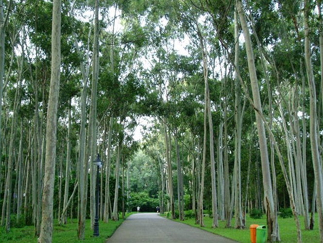 靠北環(huán)路以松木,馬尾松木,馬占相思為主的人工林,由于結構單一,功能退化,已進行了林分改造,在保留鴨腳木,山烏桕,野漆樹等具有景觀效果的樹種,已混交配置了鳳凰樹,大葉紫薇,火焰木,美麗異木棉,黧蒴,荷木,紅花荷等骨干樹種,形成了層次鮮明,生態(tài)效率高,景觀效果好的城市山地背景。山脊線主要是以荷木,大葉相思,臺灣相思組成的防火林帶。