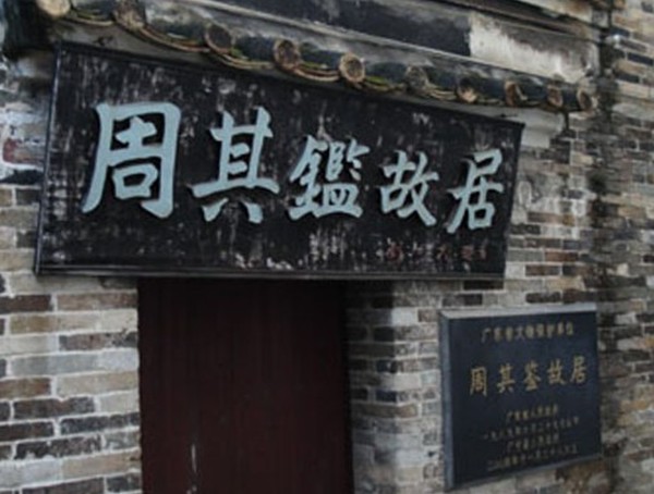 周其鑒烈士故居,在東鄉鎮紅星管理區新樓村,磚木結構建筑,三間兩廊民房,寬14.1米;深11.6米,面積為163平方米。農民運動期間,其故居是進行革命活動的主要故居附近的“澹園”書室是彭湃、周其鑒于民國13年(1924)11月主持中共廣寧縣支部首批黨員入黨儀式的地方。 地點之一,彭湃、周其鑒等主要領導人經常在此研究工作。