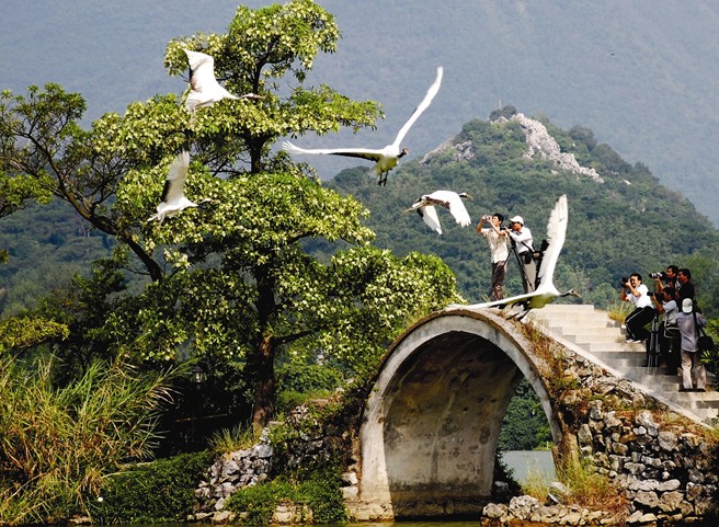 游人可乘坐仿古游船近距離觀看保護區內的自然候鳥和濕地風光,也可以登上鶴島,穿梭于木棧道之中,欣賞一生難得一見的“世界絕活”丹頂鶴編隊飛翔。也可以通過鶴島上設置的望遠鏡遠距離觀賞候鳥。同時,星湖濕地公園也是一個重要的科普教育基地。現規劃在大攬崗通過對現有建筑進行改造,建立濕地宣教中心。濕地宣教中心設多媒體展示中心、宣教圖片展覽室、標本室和魚類館,版權所有山東聊城聊之旅國際旅行社有限公司,轉載必究!配置陳列與展示柜、辦公用具以及計算機、投影機、電視機、錄像機等儀器設備,通過圖片資料展覽、實物展示和放映展示濕地優美環境和濕地保護知識的錄像、電影、電視片等,對群眾進行集中宣傳教育。規劃建筑面積600多平方米。星湖濕地公園是廣東肇慶市生態系統的重要組成部分,是肇慶市天然的“城市之腎”;是肇慶市作為山水名城、國家歷史文化名城、全國優秀旅游城市的重要載體;是肇慶市“千里旅游走廊”上的明珠;是我國南方濕地珍稀水禽人工繁殖的國家級基地;是廣東省濕地生態科普教育基地。所以,星湖濕地公園是游人悠閑、度假、觀光以及增長見聞的好去處,是宣傳濕地保護的一個重要載體。