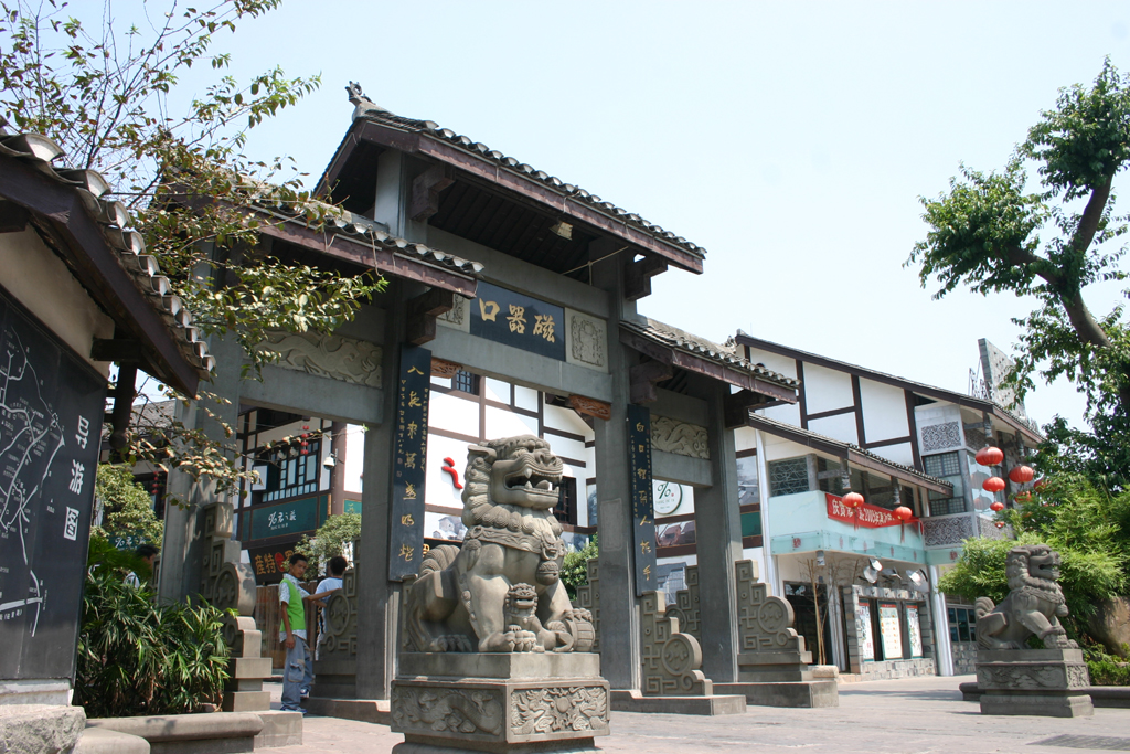 磁器口,以出產瓷器而得名。在1918年地方商紳集資在青草坡創建了新工藝制瓷的“蜀瓷廠”,瓷器質地很好,品種繁多,名聲漸大,產品遠銷省內外。漸漸地“磁器口”名代替了“龍隱鎮”。現已發現古窯遺址20余處。
