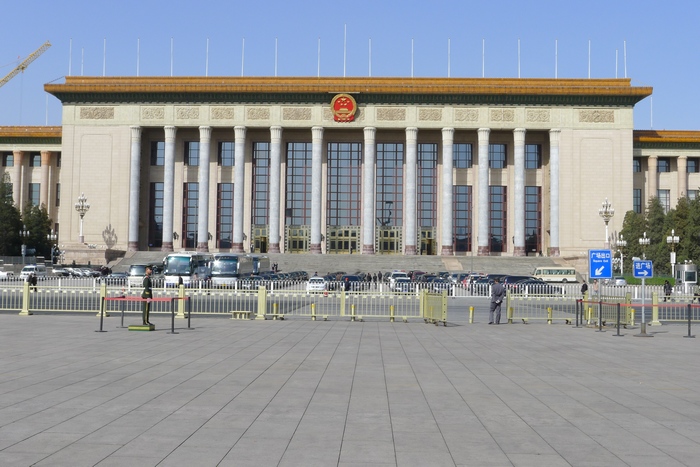 人民大會堂位于北京市中心天安門廣場西側,西長安街南側。人民大會堂是中國全國人民代表大會開會的地方,是全國人民代表大會和全國人大常委會的辦公場所。是黨、國家和各人民團體舉行政治活動的重要場所,也是中國國家領導人和人民群眾舉行政治、外交、文化活動的場所。人民大會堂坐西朝東,南北長336米,東西寬206米,高46.5米,占地面積15萬平方米,建筑面積17.18萬平方米。比故宮的全部建筑面積還要大。人民大會堂每年舉行的全國人民代表大會、中國人民政治協商會議以及五年一屆的中國共產黨全國代表大會也在
