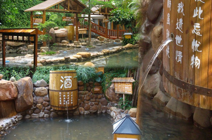泉眼溫泉至今已有千年歷史,溫泉水質(zhì)經(jīng)中山大學(xué)基礎(chǔ)醫(yī)學(xué)院檢測,富含鈉,鉀,鈣,鐵,鋅等30多種有益人體纖體,美膚,活血、保健等功效的微量元素,是難以求得的優(yōu)質(zhì)巖層溫泉,被專家稱為“嶺南名湯”。溫泉設(shè)計融匯中外名泉優(yōu)點(diǎn),巧妙將現(xiàn)代與自然結(jié)合,溫泉空間人泉合一,泉區(qū)布局幽閑浪漫,有“浪漫溫泉”之美稱。