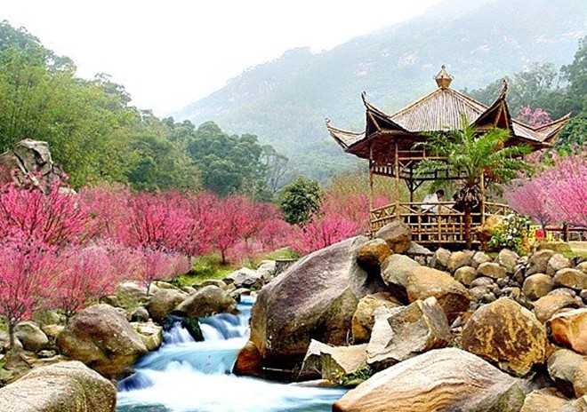 桃花——神圣之樹,象征幸福、美滿、吉祥!竹仙洞的桃花具有悠久的歷史,早在同治三年楊云驤在此隱居時就有私家桃園。近年來,景區對桃園加以修建,開辟桃花溪,打造“桃源仙境”,至今已建成面積2萬平方米、數十品種千多棵桃樹的桃園,并注入桃花文化,充分體現了人與自然和諧,是都市人靜聽天籟、寧心養神的絕佳之處,置身其中,可以感受到“桃源行一里,好比沐法雨;仙境游一天,勝似做神仙。”的意境。每逢春節,景區定期舉辦桃花節,于今成為珠海市惟一的賞桃花之處。