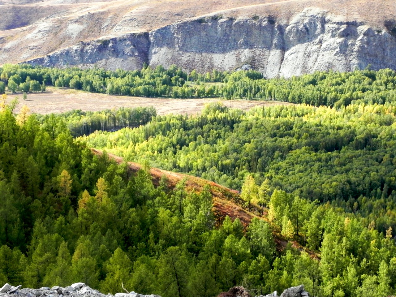 在阿爾泰山可以看出4個相當分明的植被區(qū)︰山地亞沙漠帶、山地草原帶、山地森林帶及高山帶。第一個植被區(qū)可見于蒙古阿爾泰山和戈壁阿爾泰山的低坡和山谷,夏季高溫少雨︰稀疏的植物包括一些耐旱耐鹽的草木。山地草原帶在北部高約610公尺(2,000呎),在南部和東部高達2,012公尺(6,600呎)。草甸和混生草草原以草皮草、牧草和草原灌木為特征。山地森林帶由泰加林(亦稱北方森林,即沼澤地針葉林)構(gòu)成,為阿爾泰山本體所特有;它大約覆蓋70%的山地面積,大多分布在中低山區(qū)。森林可以達到海拔1,981公尺(6,500呎),但在阿爾泰山的中部和東部的比較干燥的山坡上可以延伸到海拔2,438公尺(8,000呎)左右。最為普遍的是針葉樹種──落葉松,樅,及松(包括西伯利亞石松) ── 但也有大片地區(qū)為次生樺木森林和白楊森林所覆蓋。在蒙古阿爾泰山和戈壁阿爾泰山實際上并不存在森林帶,但卻有零星的針葉樹叢生長在河谷里。高山帶植物──亞高山灌木次于廣泛用作夏季牧場的草甸,其次是苔和裸石及冰──僅見于最高的山嶺。
