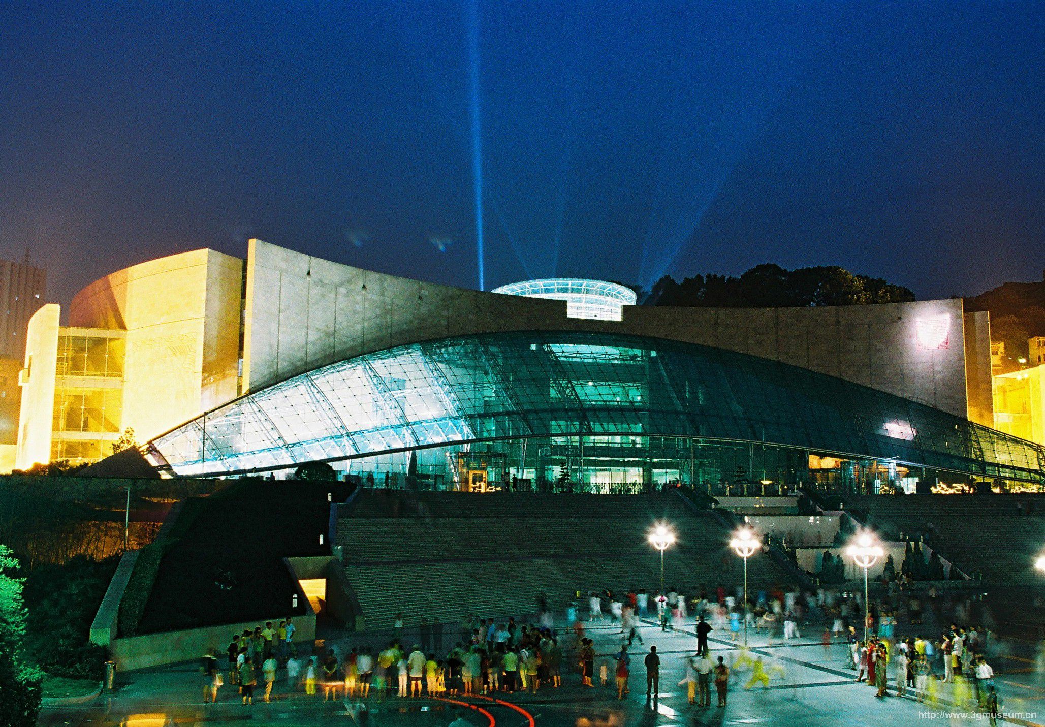 重慶中國三峽博物館的總體布局通過以東西走向的人民大禮堂對(duì)稱軸為主軸線,并以一個(gè)完形將人民廣場與博物館主體建筑聯(lián)系起來,版權(quán)所有聊城聊之旅國際旅行社有限公司,轉(zhuǎn)載必究!主軸線上人民大禮堂、人民廣場、博物館三位一體,一氣呵成,張馳收放灑脫自如,形成“三位一體”的四維效果(包含人群的行為運(yùn)動(dòng))。通過對(duì)完形的分解整合、高差變化、肌理對(duì)比,形成統(tǒng)一簡約而又內(nèi)涵豐富的象征圖形。人民廣場與博物館一體圖形,用一把巨型的琵琶圖案連接。從東端人民大禮堂向西望,博物館主體的玻璃頂在陽光照射下有如水中(前部水池)和群山(展廳山石狀)中升起的紅日,顯出勃勃生機(jī)。從西端博物館東望,人民大禮堂在人民廣場和諧曲線環(huán)抱的映襯下,昭示出博物館和人民大禮堂兩個(gè)不同時(shí)期標(biāo)志性建筑的歷史對(duì)話,而人民廣場則成為對(duì)話的極佳場所,版權(quán)所有聊城聊之旅國際旅行社有限公司,轉(zhuǎn)載必究!這種生動(dòng)、諧趣的對(duì)話方式,既強(qiáng)調(diào)了歷史和社會(huì)的人文關(guān)懷,又展示了重慶人民對(duì)未來的美好憧憬。