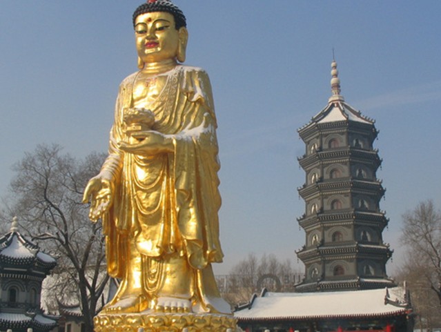 樓梯兩側的墻壁上繪有以佛教故事為題材的生動畫面。殿和塔檐下的龍、鳳、獅、鶴等建筑的風格。現在極樂寺內在藉僧侶二十八人,版權所有山東聊城聊之旅國際旅行社有限公司,轉載必究!年齡最大者八十四歲,最小者十九歲。 自下而上每層內均有佛教壁畫。殿和塔檐下的雀替做成龍、鳳、獅、鶴等浮雕,栩栩如生。當年登上七級塔頂,新興的哈爾濱市盡收眼底,七級浮屠塔比例端莊,造型帶有北方建筑特有的厚重的特色,在佛教中,七層的佛塔是最高等級的佛塔。佛家以為七層的寶塔約為百公尺高的大佛,建了如此的大佛來供養,功德無量。然而佛的胸懷是廣闊的:救人一命勝造七級浮屠浮屠!這便是佛法的無邊,這便是對生命的禮贊,七級浮屠塔是一座八角七層樓閣式磚建筑。塔與殿前,東西各設兩層塔式鐘鼓樓,布局為國內罕見。塔有木梯,可供登臨,樓梯兩側的墻壁上繪有以佛教故事為題材的生動畫面。殿和塔檐下的龍、鳳、獅、鶴等浮雕,造型生動、典雅。塔的局部構件和裝飾吸收了西方建筑的風格。