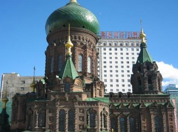 索菲亞廣場位于美麗的松花江南岸,占地5萬平方米,以其獨特的建筑景觀、歐域風情聞名于海內外。區內標志性建筑——索菲亞教堂,為全國重點文物保護單位,建于1907年,曾是遠東地區最大的東正教堂,規模宏大,雄偉壯觀。中心休閑廣場、建筑藝術廣場均為景區內敞開式文化廣場,夏日綠草茵茵、花團錦簇.音樂噴泉翩翩起舞、多姿多彩;冬日銀裝素裹、白雪皚皚,大型冰景氣勢恢宏、風光獨特。