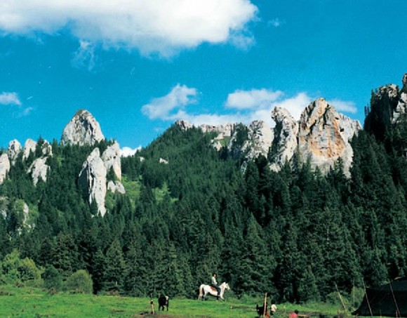 則岔石林位于海拔3250米的甘南州碌曲縣洮河南部,景區(qū)全長(zhǎng)22公里,面積達(dá)2萬(wàn)公頃,最高峰海拔4300米,最低處海拔2900米。該地系造山運(yùn)動(dòng)上升,并經(jīng)流水侵蝕、風(fēng)剝雨蝕而成的大面積硅灰?guī)r石林。妖峰屹立,千姿百態(tài),以“險(xiǎn)、峻、奇”著稱,主要景點(diǎn)有“青天一線”、“靈猿望月”、“唐僧師徒”、“駱駝峰”等,它們神形兼?zhèn)洌S妙維肖,每個(gè)景點(diǎn)又都滲透著藏族英雄格薩爾王的傳說(shuō)故事。版權(quán)所有山東聊城聊之旅國(guó)際旅行社有限公司,轉(zhuǎn)載必究!據(jù)史載,歷史上唐蕃曾在此會(huì)盟。這里也是13世紀(jì)末葉蒙元?dú)埐客塑姇?huì)戰(zhàn)的古戰(zhàn)場(chǎng)之一。