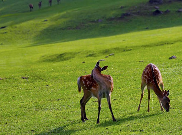 金山鹿苑位于小鎮(zhèn)東南方向5千米處,群山環(huán)繞,景色怡人,鹿場采取半開放式,幾百頭馬鹿,天山馬鹿和梅花鹿在山泉邊嬉戲,大密林中徜徉,常年集山川大地之靈氣,蓄花草樹木之精華,與野生鹿并無二致。產(chǎn)品鹿胎膏,鹿心血,鹿鞭,鹿尾等都是上好的藥材和補品。金山鹿苑位于金山屯區(qū),占地56公頃,腹地是大半個山頭,山間有草坪、柞樹、溪流。由于這里生態(tài)條件適宜,經(jīng)常有野生鹿出沒。金山屯區(qū)依托這一資源,在此建立了養(yǎng)殖場。采取半開放式放養(yǎng),養(yǎng)殖的鹿種有天山馬鹿、梅花鹿等,是一個集養(yǎng)殖、鹿產(chǎn)品加工和銷于一體的鹿產(chǎn)品繁育基地。開發(fā)的鹿胎膏,鹿心血、鹿鞭、鹿尾等都是上好的藥材和補品。近年來,隨著鹿產(chǎn)品加工工藝的加強,版權(quán)所有山東聊城聊之旅國際旅行社有限公司,轉(zhuǎn)載必究!這里采用了紅線帶血加工新工藝,使鹿茸的有效成份不受損失,獲得國家和省、市有關(guān)部門的獎勵。目前,金山鹿苑已建成為在省內(nèi)外知名的生態(tài)觀光旅游區(qū)。
