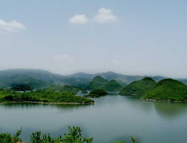 百花湖畔,清鎮(zhèn)市第二高峰云歸山,自東向西環(huán)抱鄉(xiāng)境,支脈延伸,千姿百態(tài),青翠秀麗。丘陵、槽谷、山地、水域連為一體,形成一個生態(tài)大板塊。云歸山居清鎮(zhèn)市八景之首,“爐嶺歸云”高聳入云,極目百里,昕夕云集。云歸林區(qū)、九里箐,方圓七十余里,原生植被,物種繁多,森林茂密,鳥語花香,山谷幽深,清泉汩汩。石操、上麥城、下麥城、溫水、哪嘎、盤龍洞等林場構(gòu)成道道生態(tài)屏障。為打造“森林生態(tài)”文化,相繼實施長江防護林、天然林資源保護、退耕還林還草、沿湖綠化工程,森林面積從“九五”末的8.89萬畝增加到2006年的9.63萬畝,森林覆蓋率提高到60%。林密、地綠、山青、水秀使百花湖鄉(xiāng)成為名副其實的避暑勝地、“天然大氧吧”。綠色農(nóng)業(yè)、生態(tài)農(nóng)業(yè)成為調(diào)整產(chǎn)業(yè)結(jié)構(gòu)的主攻方向,十里杜鵑、十里櫻桃、百畝李子、千畝高產(chǎn)油菜、百畝烤煙、百萬只肉雞飼養(yǎng)、無公害茶樹菇等基地初見成效,促進了農(nóng)民增收,版權(quán)所有山東聊城聊之旅國際旅行社有限公司,轉(zhuǎn)載必究!2006年農(nóng)民人均純收入2877元。蘿卜、云歸、三屯一帶十里峽谷盛產(chǎn)櫻桃,杜鵑遍山,獨具“春到三月意更濃,云歸十里櫻桃紅。杜鵑滿山織云錦,農(nóng)家年年坐春風(fēng)”的詩情畫意。“品云歸櫻桃,賞十里杜鵑、烤百花鮮魚”,是百花湖旅游的獨特享受。境內(nèi)三季有果、四季有花,生機盎然,漫步山間田野,賞花品果,其樂無窮。 百花湖鄉(xiāng)境內(nèi)河流眾多,水資源豐富。上世紀(jì)60年代因建百花電站形成的百花湖,與紅楓湖并稱“姊妹明珠”。蓄水2.1億立方米,水面14.5平方公里,92%在百花鄉(xiāng)境內(nèi)。如今湖面如鏡、影映青山、振翅小島、層層梯田、點點農(nóng)舍、縷縷炊煙,一派田園風(fēng)光,成為休閑避暑、度假觀光的旅游勝地。百余個峰叢島嶼靜臥水中,迎客松、石鏈鎖猴、青蛙聽濤、小三峽、嬌燕戲水、八仙過海、筆峰疊翠等自然景觀千姿百態(tài)。百花湖沿岸,三屯五堡之間,百花山莊、百花游樂園、明月樓、觀云樓、靈達度假村、星苑等一幢幢旅游建筑拔地而起,集會議、休閑、餐飲、娛樂、觀光為一體。著名作家金庸星苑登樓觀景,欣然贊曰“如此湖山天下無,天然勝景百花湖”。