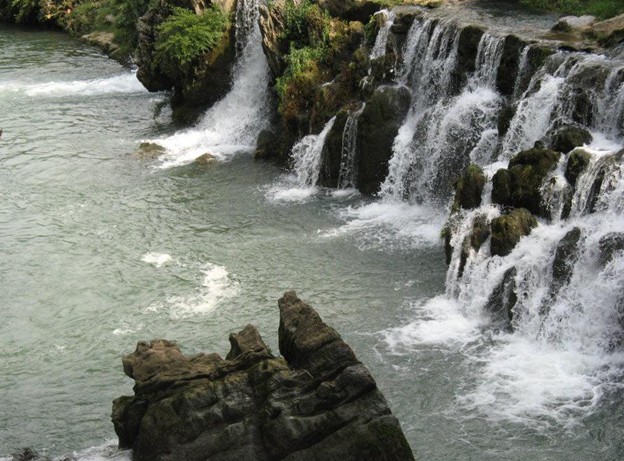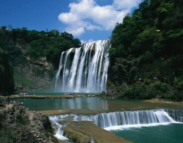 中國最大瀑布群,這里石峰成林,壯闊雄偉;峽谷成河,奇險幽深。它是國家最近公布的重點風景名勝區之一。馬嶺河發源于烏蒙山脈,流入黔、桂交界的南盤江,長達100多公里。它的地貌結構與一般峽谷不同,實際上是一條地縫。有人說:這是地球最美麗的傷疤。沿著石階下坡,奇險幽深的峽谷就逶迤展現在眼前。走在這條深200-400米的地縫底部,只見尖峭的峰巒赫然屏列,瀑布異彩紛呈且氣勢磅礴,有一種幽深的神秘氣氛彌漫在山谷間。