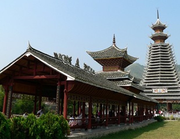 車江侗寨 也稱“千戶侗寨”,是全國侗族人口居住最密集的地方。從榕江縣城過了榕江大橋往北就是車江萬畝大壩。都柳江支流寨蒿河流經筆架山下,連接沿河5個村的侗寨。因河中有巨石三塊,“三寶”因此得名。“三寶”侗寨綿延約有15千米,除非有很充裕的時間,否則很難一一走到。離榕江縣城5千米左右可以看到一座木結構寨門,上面寫著“天下第一侗寨”,這是較有規模的古榕群景區。景區由章魯、寨頭、莫堂三個村組成,共800余戶,3000多人。進寨后來到都柳江沿岸可看到一大群古榕樹。這些榕樹大概植于清代乾隆年間,距今已有300多年歷史。現有古榕38株,彼此之間根系相連,枝葉相接,像一個綠色天蓋。據說以前有更多的榕樹,解放后大多被砍伐了。現在所有的古榕都已經被保護起來。在古榕群間有一條鵝卵石鋪成的街道,當地人叫花街。這條街大概0.5千米長,鵝卵石鑲嵌成了十二生肖的圖案。走到路的盡頭還能看到一座雕塑,由一男一女組成,男的叫珠郎,女的叫娘美。20世紀50年代中國曾拍過一部電影叫《秦娘美》,據說是一個中國式的“羅密歐與朱麗葉”的故事,而這里就是秦娘美的故鄉。版權所有山東聊城聊之旅國際旅行社有限公司,轉載必究!作為侗族最集中的地區,車江最大特點是鼓樓眾多。其中比較引人注目的是“車寨鼓樓”,始建于清光緒三年(1877年),至今有120多年歷史。近年新建的更是侗寨鼓樓之最。除了鼓樓外,在“三寶”侗寨見得較多的就是圣母祠,侗家人稱為“薩瑪祠”(薩瑪是大祖母的意思),它是侗族人民祭祀女神“薩瑪”的祠廟,幾乎每個村寨都有,整個三寶侗鄉共有9座。祠廟內都有用磚瓦蓋成的小屋,屋中央用石頭壘成石堆,中間插一把半開的紙傘,周圍有12或14個小木椿或小石堆。紙傘和木椿上披掛剪紙。這些木椿、石堆表示“薩瑪”之位。祠廟外都種植有一株常青樹,象征圣母“健康長壽”。薩瑪寺平時鎖著,想看的話得找寨民開門,還要給2元。古榕最密集的地段在車江蔭塘寨到章魯寨約1千米的河岸,共有54株。天造地設,組成了世界罕見的古榕群。建議你找一家小店買點甜米酒,味道不錯,請周圍的人喝點,他們也許會盛情邀請你到他們家去歇息或吃頓便飯。甜米酒不能喝太多,這東西后勁不小。沿著河堤走可到車江河水泥橋。旁邊有一棵榕樹包著一塊石碑。這里原是一個渡口,民國的時候村民為了記住捐資修渡口的人在此立了塊“公德碑”,立碑時旁邊有一株榕樹,結果歲月流逝,榕樹慢慢將碑包入了自己的懷里。都柳江從車江侗寨旁緩緩流過,江面寬闊,江水清澈,可以看到婦女們在江邊洗菜、洗衣服、洗頭,男人們挑著稻谷從木板橋上走過。而寨子的另一面就是公路,車流不息。住宿:珠郎娘美塑像的旁邊臨江有幾家民居都可以住宿,侗家木樓一層不住人,住在二樓,走廊上看出去就是清澈的江水和姿態婀娜的古榕,很舒服的。10~15元/床,房間不大,通常一個房間就一張床,所以這樣的價格住單間很劃算。