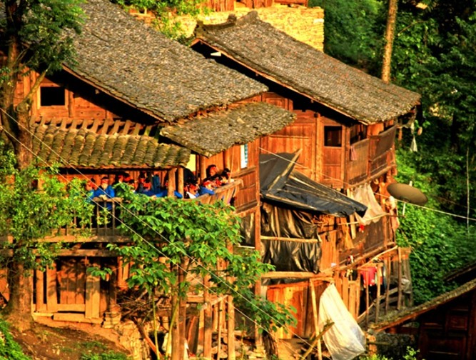 榕江縣侗家村寨大多坐落在古樹參天,風光秀麗,竹林掩映,依山傍水的地方。房屋多為二層或三層不等的木質(zhì)結(jié)構(gòu)吊腳樓,吊腳樓一般依山勢開辟成兩層地基,下層屋基柱腳須用筒柱支撐,有的因偏廈建在地基之外的村巷上或魚塘上而無支柱造成木樓空懸,吊腳樓因此而得名。七十二寨的房子,每幢樓一般分兩間或三間,也有五間或七間的。除了正屋外,兩側(cè)還設(shè)有寬約丈許,與正屋進深等長的偏廈,上樓的樓梯多架于正屋右側(cè)的偏廈上,二樓前邊是一道由東直通往西的長長走廊,廊沿外及整個房子四周先裝木板后于裝板外鑲嵌雕花格子,這就是我們通常所說的雕房。走廊里外分別擺放有幾根寬約尺許,長達丈余的杉或松木板凳供客人休息用。七十二寨侗族的火堂一般設(shè)在堂屋里間或兩側(cè)房間內(nèi),火堂分“平燒火堂”和“高燒火堂”兩種。樓下主要用來關(guān)養(yǎng)牲畜,樓上住人,存放糧食,天樓堆放生活、農(nóng)用雜物等。平燒火堂的表層齊樓板表面,裝滿黃泥巴的撻斗形狀的火堂斗高約一尺,長寬約1米見方,懸于樓板下邊;高燒火堂的泥斗置于樓板之上,火堂表面高于樓板尺許,左右及內(nèi)側(cè)再鋪一層樓板,形成上下兩層,就表上層連火堂形成長約一丈,寬約六尺的長方形樓臺,臺下的樓板僅余常約一丈,版權(quán)所有山東聊城聊之旅國際旅行社有限公司,轉(zhuǎn)載必究!寬4尺的狹長形,與火堂表面形成兩層,這就是獨具特色的七十二寨侗族“火鋪臺”。“火鋪臺”主要用于炊事和烤火,其下面一般是用來存放紅苕、洋芋等物。這就是七十二寨侗家人房屋建筑的特點。