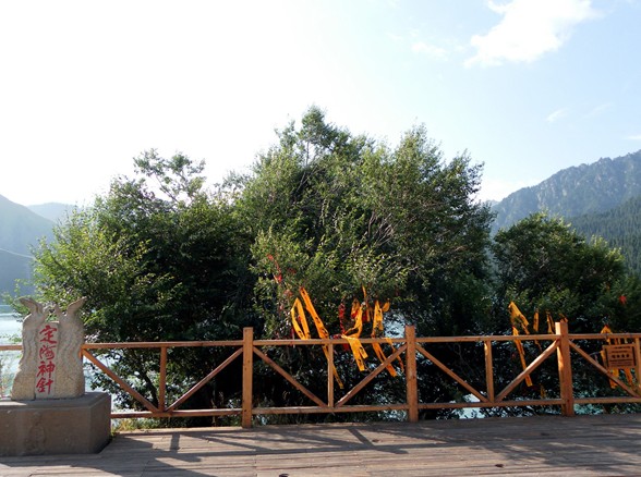 定海神針是天池周圍方圓幾公里內唯一的一棵榆樹,也是海拔最高的一棵樹。在天池湖岸邊有一棵郁郁蔥蔥,枝繁葉茂,傲然獨立的大榆樹,這就是天池八景之一的“定海神針”。神話傳說:相傳當年王母娘娘開蟠桃盛會,廣邀各路神仙,唯獨忘了邀請瑤池水怪。席間水怪興風作浪,王母娘娘怒不可遏,拔下頭上的一枚碧玉簪,擲入水中降服水怪。風平浪靜后,這枚碧玉簪落地生根,化成了一棵榆樹,版權所有山東聊城聊之旅國際旅行社有限公司,轉載必究!鎮守在池邊,無論水位怎么漲落,都淹不到這棵神樹,后人稱之為“定海神針”。