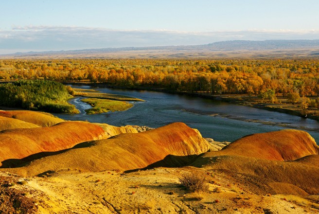 五彩灘一河兩岸,南北各異,是國家4A級景區。五彩灘又稱五彩河岸,位于額爾齊斯河流域,由于長期受風蝕水蝕以及淋溶等自然作用的影響而形成的,屬于典型的雅丹地貌,“雅丹”是地理學名詞,維吾爾語“險峻得土丘”之意。其南邊是我國唯一向西流入哈薩克斯坦--俄羅斯--北冰洋的額爾齊斯河,僅次于伊犁河的新疆第二大河。